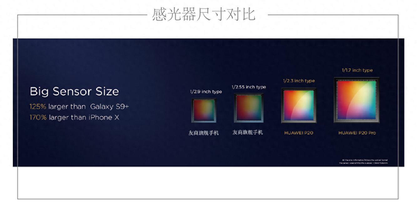 华为P20 Pro目前唯一一款1/1.7英寸超大感光器,华为P20拥有1/2.3英寸的感光器。大尺寸的感光器,让夜拍时获取更多的光。