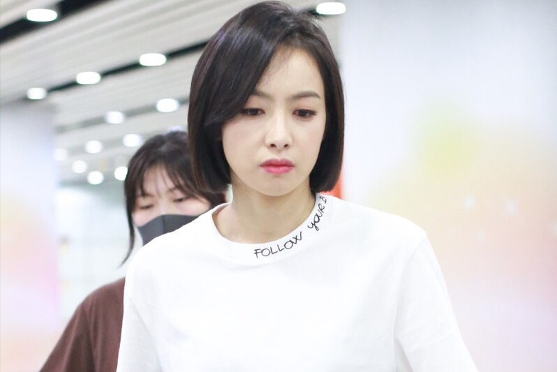 发型侧面略微盖住耳朵的上沿,后颈自然收紧,形成一个圆润饱满的弧度,更是把优美的肩颈线衬托得更加修长。一款普通的短直发,就这样被她轻松驾驭出满满的高级感。