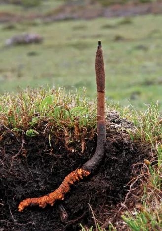 它是蝙蝠蛾幼虫被虫草菌(Ophiocordyceps sinensis)侵染形成。蝙蝠蛾的幼虫生活在地下,而虫草菌的孢子会通过水渗透到地下,专门感染它们。