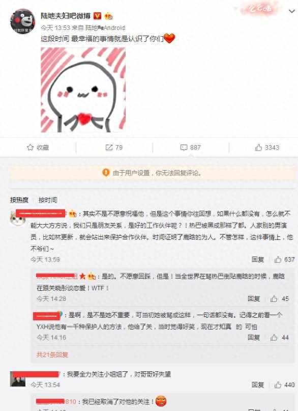 只是今天鹿晗宣布女友无意是为cp粉中扔进了炸弹,陆地夫妇的百度贴吧有进三十万的关注,今天至少听到了三十万颗心被炸碎的声音。网友表示“大概我们二十多万人都看错了一个男人....难道各种眼神跑男团成员的反应都是假的......甜蜜倒是没感受到只感受到暴击...简直饭都不想吃了,权当20多万人都瞎了眼吧”这位网友应该说出了千万个鹿迪夫妇cp粉的心声吧。
