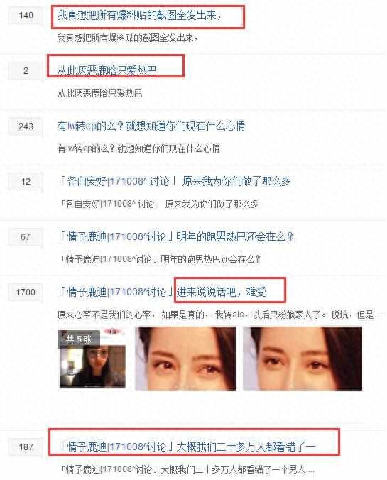专门为鹿晗和迪丽热巴建立的百度贴吧——陆地夫妇吧简直可以说是哀鸿遍野。先看看曾经鹿晗这眼神就知道网友为何反映如此强烈了。有网友说“当热巴被全世界骂倒贴鹿晗的时候,鹿晗在跟关晓彤甜蜜的恋爱”,“如果深爱一个人是不会置她于不顾,让她独自背负万千网友的指责”,热巴代班babay加入奔跑吧兄弟,在节目中与鹿晗互动较多,两人不论是深情对望,还是温暖摸头杀,慢慢的cp感,因为鹿晗的超高人气,迪丽热巴因此而受到了很多女粉丝的非议,但是也有很多粉丝坚定的站鹿迪夫妇。