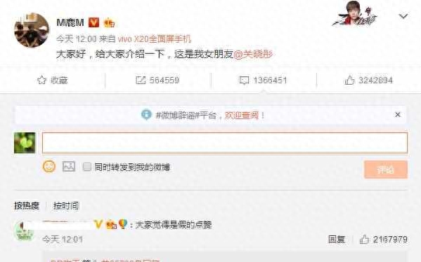 其实,鹿晗公开自己的女友也是一种负责任的表现,只是这种行为肯定会伤及鹿迪夫妇,看看关晓彤微博的评论就知道她也承受着很大的压力,之前一般都一万左右的评论,今天这条评论直逼百万!希望关晓彤能够承受住女粉丝的压力,努力走下去。
