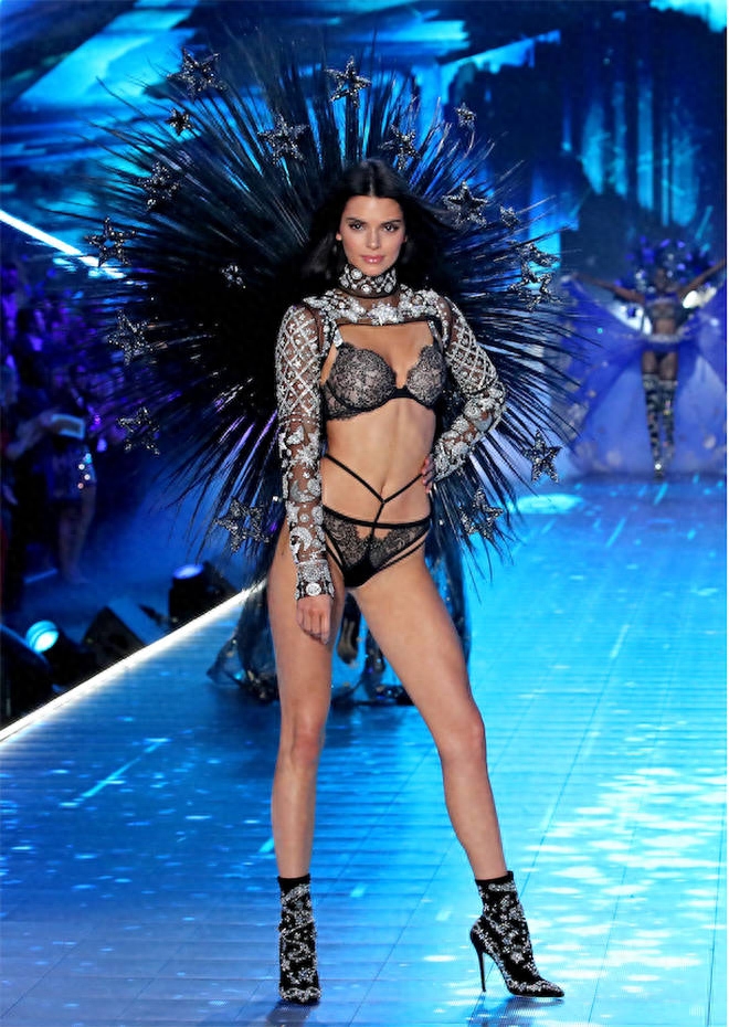 肯德尔詹纳让她重返维多利亚的秘密时装秀。这位模特和真人秀明星今晚在纽约市的 VS 跑道上昂首阔步,身穿黑色蕾丝内衣,搭配亮片黑色透明高领上衣和缀饰黑色短靴。她的“翅膀”是用星星装饰的黑色细羽毛的粉丝。