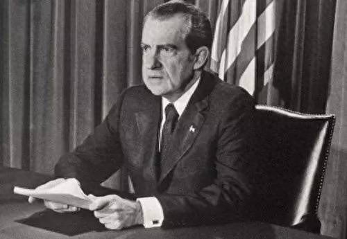 1974年8月8日晚上,尼克松不得不向全国发表电视演说,宣布辞去总统职务,成为美国历史上第一位,也是迄今唯一一位因丑闻而中途下台的总统。