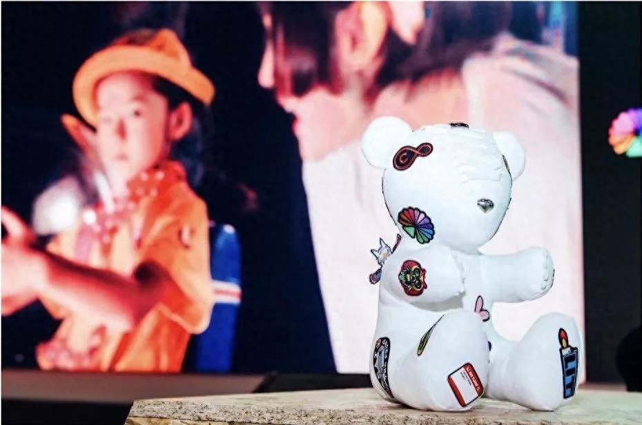 整只熊匹配了美潮经典元素「织标」,熊背后有三个位置织标可以随意替换位置,用户更容易进行创意表达。
