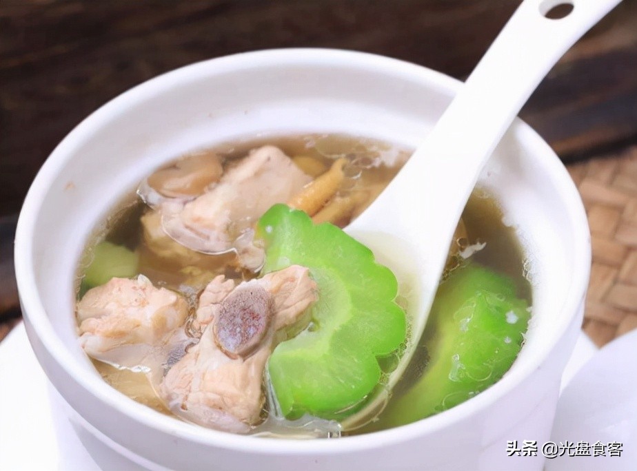 食材:排骨、苦瓜、盐、葱、姜、枸杞