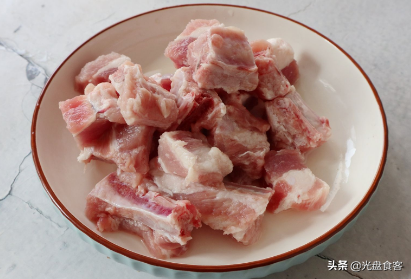 2、将排骨煮熟捞出控水,把之前煮排骨的水掉了,再往锅里加入适量的水,放入排骨、生姜、葱段一起倒入锅中等水沸腾。