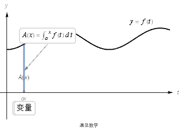 当积分的上限为x,在此基础上,做自变量x和面积函数的微分,自变量x增加一个极小值h(dt):