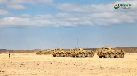 下图 我军驻扎在吉布提保障基地的装甲车也换成了适应实战的沙漠迷彩