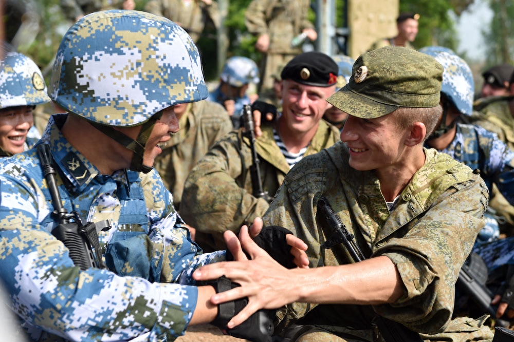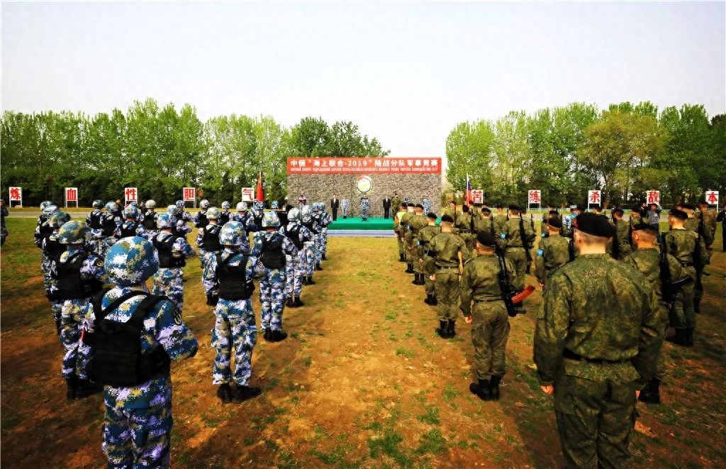 中俄海军陆战队演习列队中的中俄陆战队服装对比