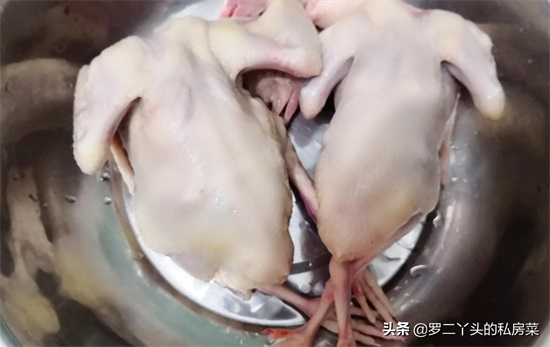 第一步:将买回来的乳鸽清洗干净,在买的时候给卖鸽的老板说开肠以切一个小洞的方式,保持鸽子整只的状态;