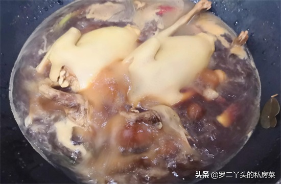第七步:40分钟后关火,盖上盖子,让鸽子在卤汤里浸泡10分钟;
