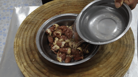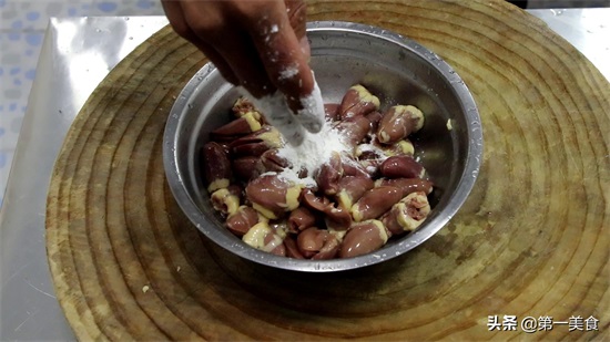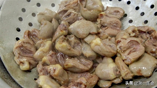 这一步的目的是,使鸡心吃起来口感更加的滑嫩、有嚼劲。