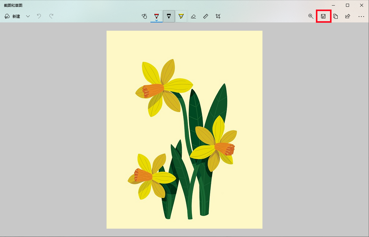 一、在电脑中用“截图和草图”工具打开图片并点击顶部【裁剪】工具。