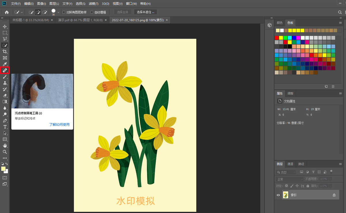 (PS有着多种去水印方法,橡皮擦是其中比较便捷的一种,但如果需要处理复杂画面的水印,建议使用PS中的其它“高阶”图片修复方法哦!效果会更好些。)