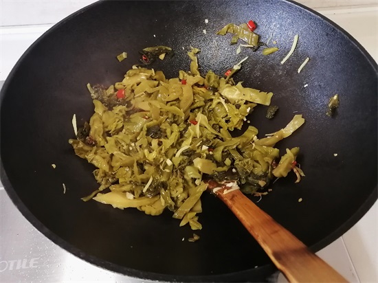 ②最好用猪油炒酸菜,更能激发出酸菜的香味。