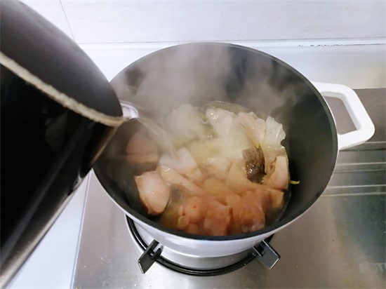 这一步是不是很江湖,随心所欲,加入金针菇大家可能会见过,其实道理是一样的。这样做炖出来的汤,有菌的鲜味,直接喝汤也很鲜美,而且蘑菇也非常好吃。