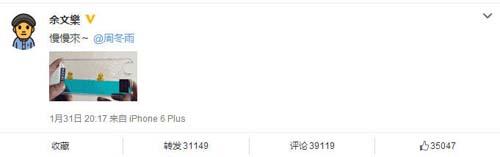 2月1日报道 香港男星余文乐 31日晚上发微博@周冬雨 疑似公开恋情,原文写到:“慢慢來~ @周冬雨”。随后周冬雨转发微博回应道:“二人游~ @余文樂”。配图为玩一个两只小鸭子玩具的动态图!网友纷纷留言表示:“不能接受!”“男神,我拒绝!”“我天,哭晕在厕所!”据悉,两人目前正在录制真人秀《我们相爱吧 第2季》。