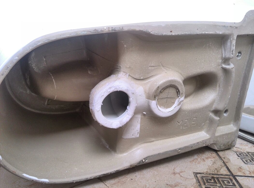 再把手伸进水箱里,好好摸一摸,可以在最底部摸到一个洞。这个洞是水箱的出水口,一般会被水件堵住。如果洞的旁边有异物(尤其是喜欢在水箱里放蓝宝宝洁厕灵的,更容易卡住),就会卡住水件,让水件无法完全堵死出水口,导致一直流水。