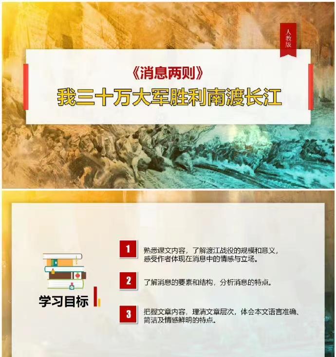 英勇的人民解放军二十一日已有大约三十万人渡过长江。→(导语)