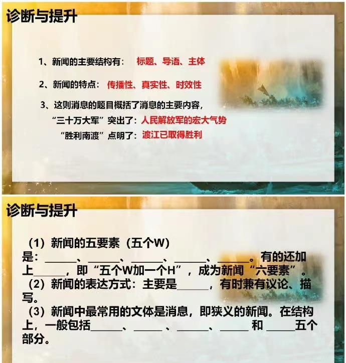 根据所学新闻知识分析《我三十万大军胜利南渡长江》结构。
