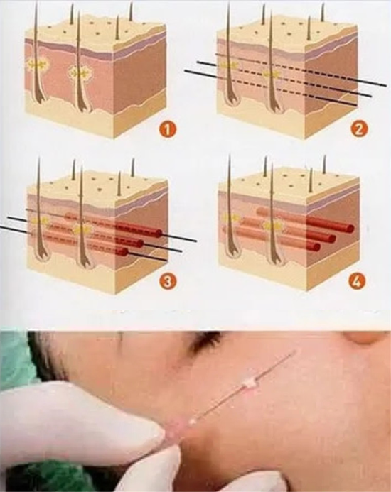 在真皮内及皮下层埋置填充线后,随着时间推移,可逐渐出现紧肤、亮肤的效果,这可能与线材降解过程中刺激组织内胶原纤维、弹力纤维等结缔组织增生等作用有关。#面部年轻化##抗衰##抗衰老#