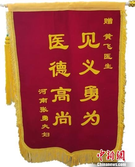 遗憾的是,孩子最终没有抢救成功。其父母心存感激,于5月29日将一封感谢信和一面锦旗寄到了黄飞在北京进修的医院。