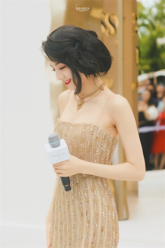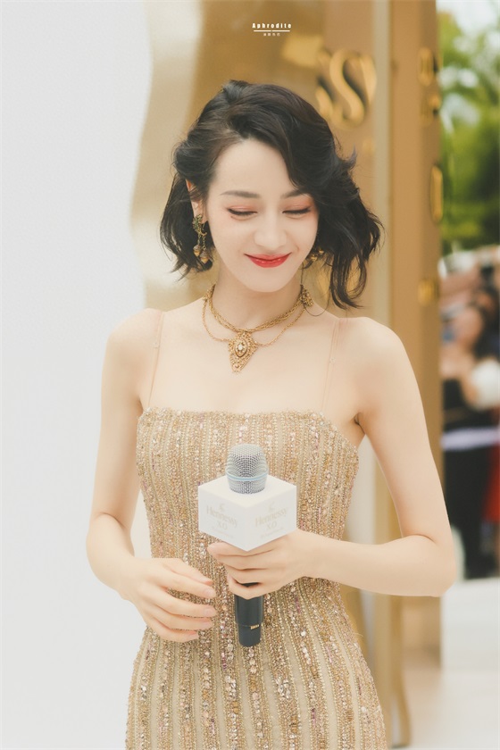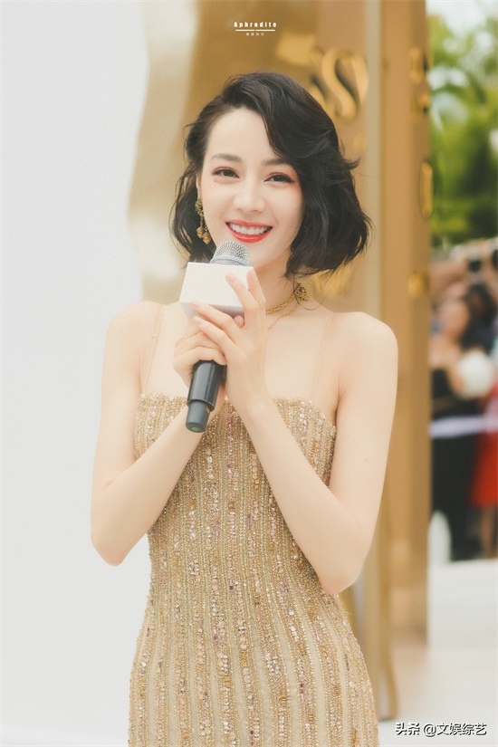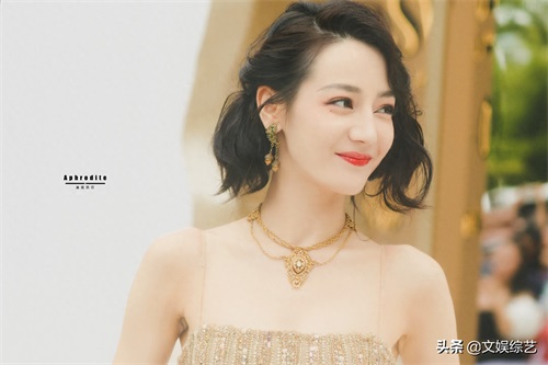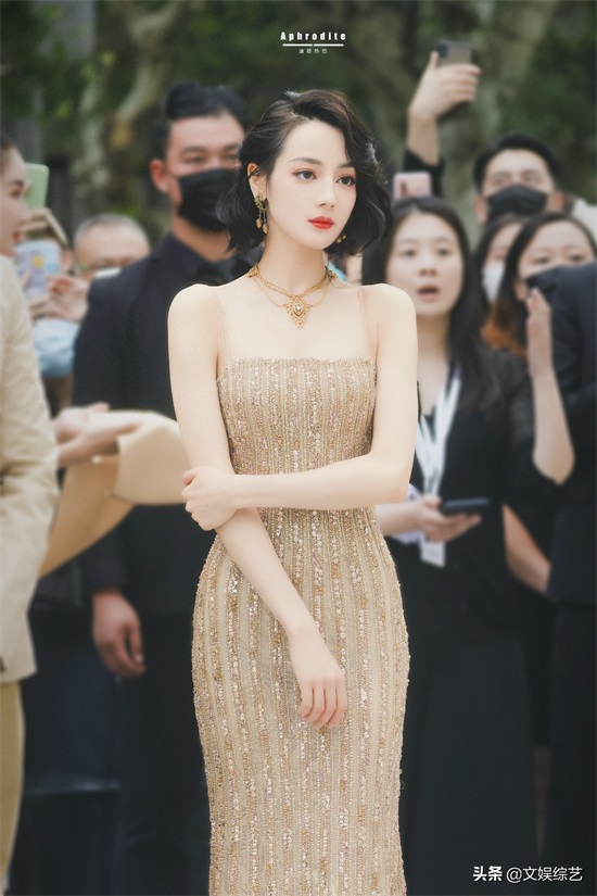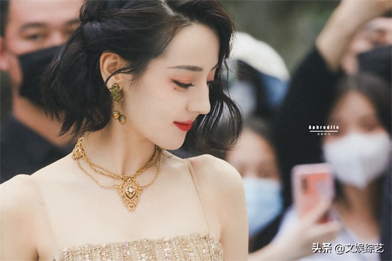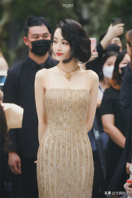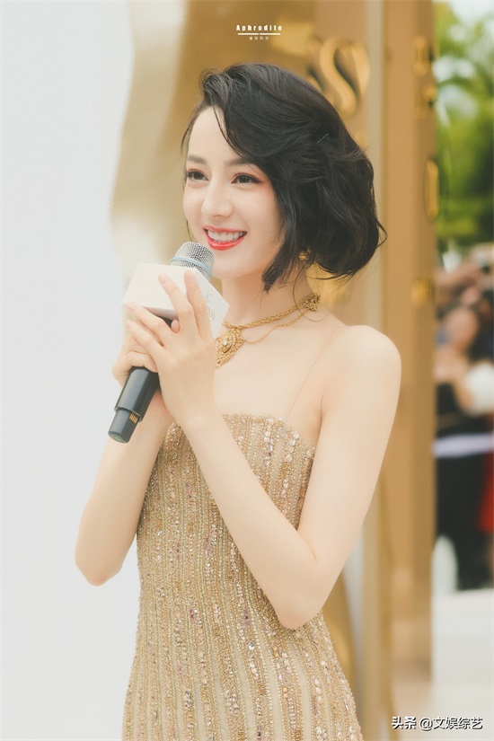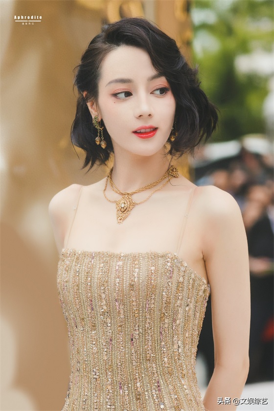 迪丽热巴这组穿搭,一头乌黑的短发,淡淡的眼妆,一身金色吊带礼服,嘴角微微一笑,让人看一次就心动一次。
