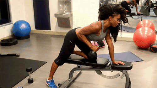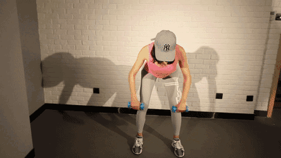 动作要领:双手握住哑铃,也可以用装满水的瓶子代替,俯身向下,将身体重心集中在我们的双腿上,手臂弯曲向上类似划船的动作。
