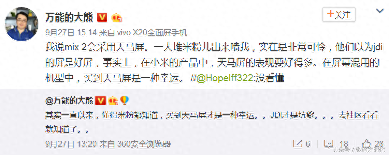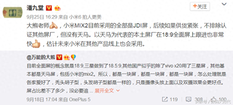 手机卖的多了,关注的多了,问题也就来了,小米MIX2采用的是谁的屏幕,JDI还是国产天马屏?行内分析师潘九堂则说小米MIX2采用的是JDI的屏幕,没有天马屏。但是现在潘九堂被小米招安了,谁敢保证他说的就是真的。