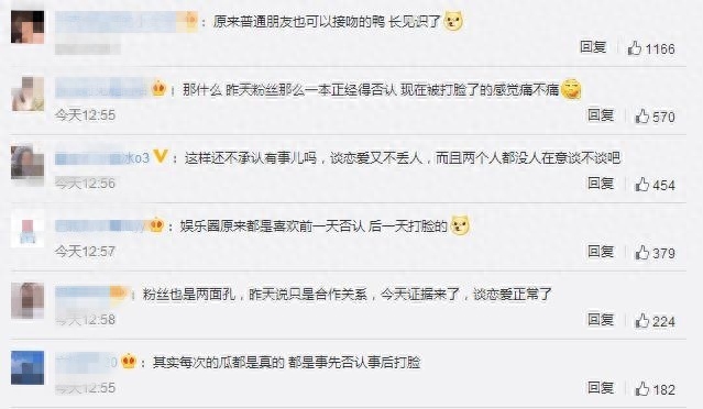 但是,这刚一否认马上又曝出两人的亲密照,真是反转来得太快就像龙卷风。很多网友也表示:“这样还不承认有事儿吗?谈恋爱又不丢人,而且两个人都没人在意谈不谈吧。”“那什么, 昨天粉丝那么一本正经地否认,现在被打脸了的感觉痛不痛?”