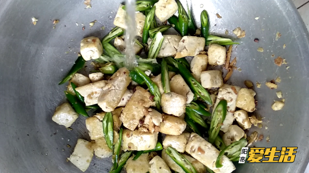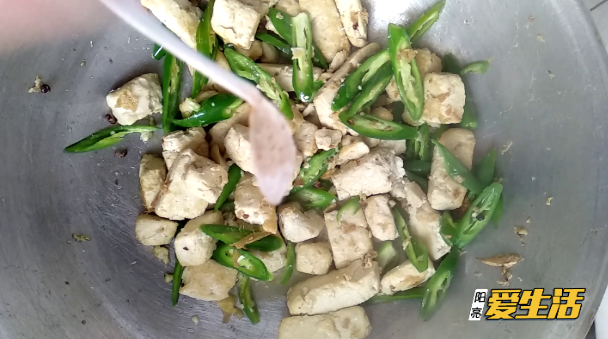 豆腐……400g;青椒……适量;花椒……适量;清水……3片;