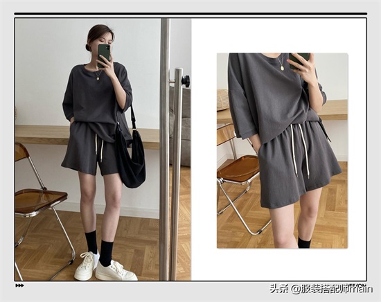 上面套装我是很喜欢,就是现在穿有点热,那就推荐这身短袖T恤的套装,同样非常舒适的面料。