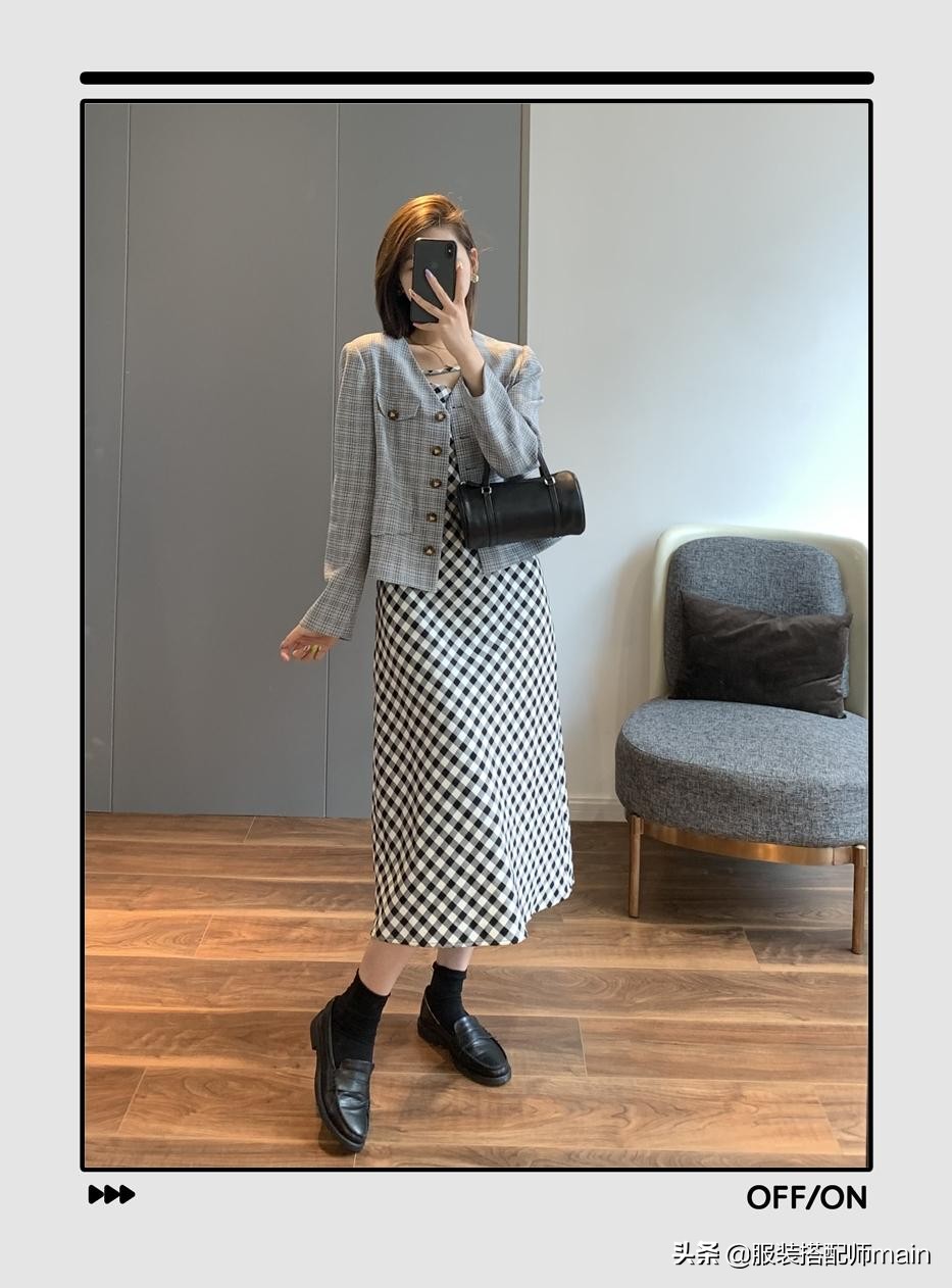 裙子的版型才叫拿捏得恰当好处,将女性的曲线完美地展现出来。搭上同色同元素的小外套,也很好看。