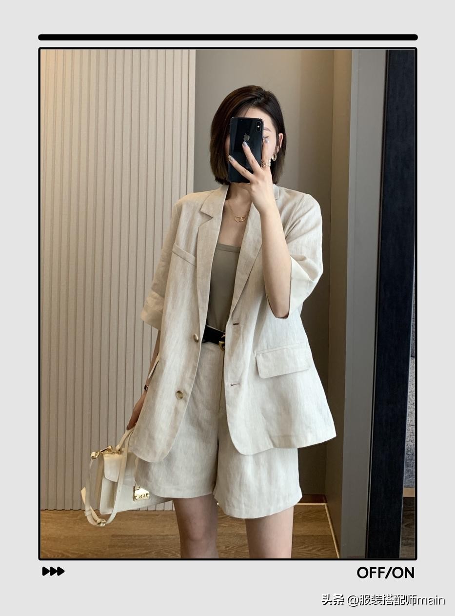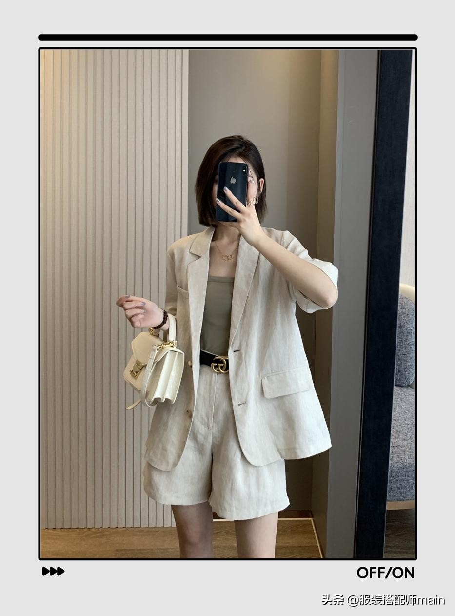 的套装今年特别的流行,可以兼顾职场的干练,还有日常的休闲,西裤穿腻了,偶尔换上半身裙,也更有