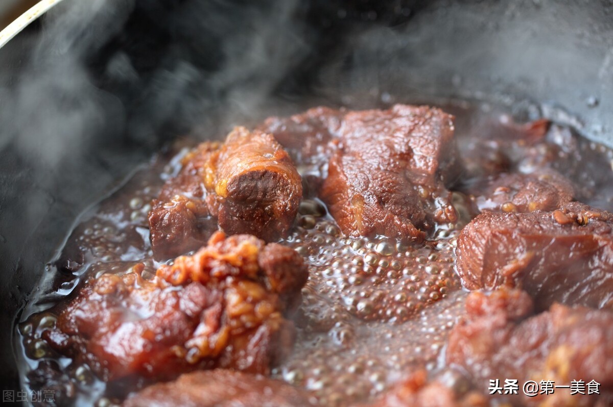 牛肉一定要开水下锅而且卤汤的量要多,全部覆盖住牛肉卤出来口感才均衡 ,不会发柴发干。