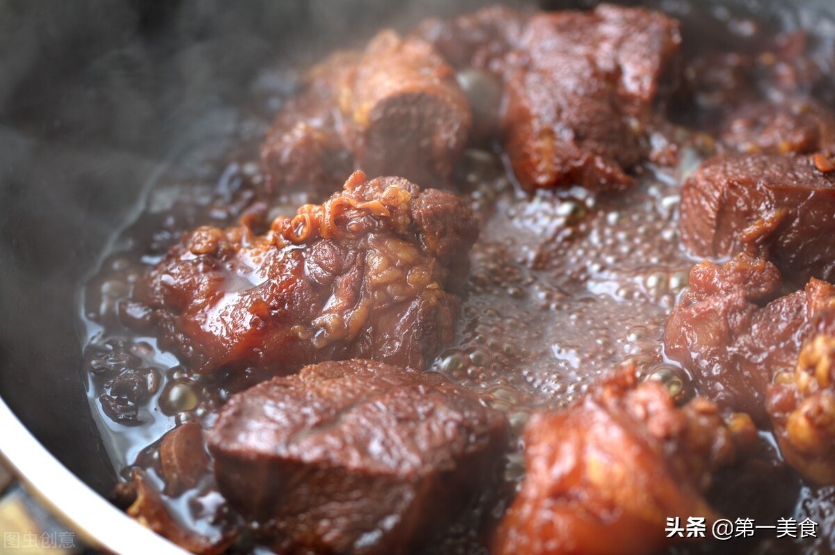 第三泡:卤好以后,不要着急出锅继续焖至汤汁自然冷却,牛肉能不能从里到外都透着鲜香全靠焖至这一步。