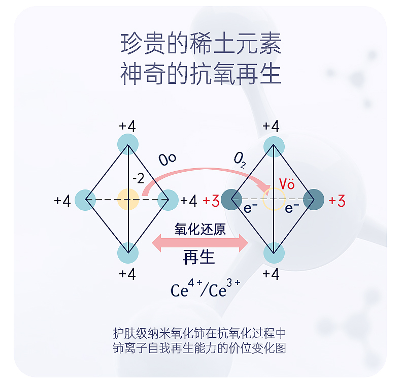 1)稀土纳米氧化铈:抗氧化界的天花板成分,其特有的价态结构,能24h持续对抗各种自由基,循环抗氧,持续抗衰,可以说是王者中的王者没有之一!简直就是让皱纹“闻风丧胆”的最强成分!成分党的不二之选!