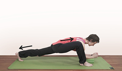 下犬式开始。一只脚靠近你的手。降低臀部并将双肘放在前脚旁边的垫子上 后腿的脚后跟向后。前腿的臀部与另一侧齐平。上半身伸展。肩膀远离耳朵,以免胸部下垂。