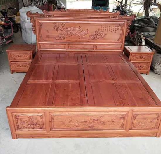 采用香椿木材制作的家具,材色红润,纹理清晰,刨面光亮美观,非常的漂亮,有驱虫防鼠的功效。