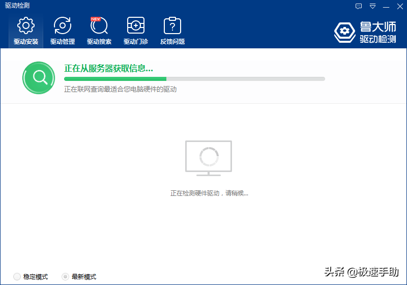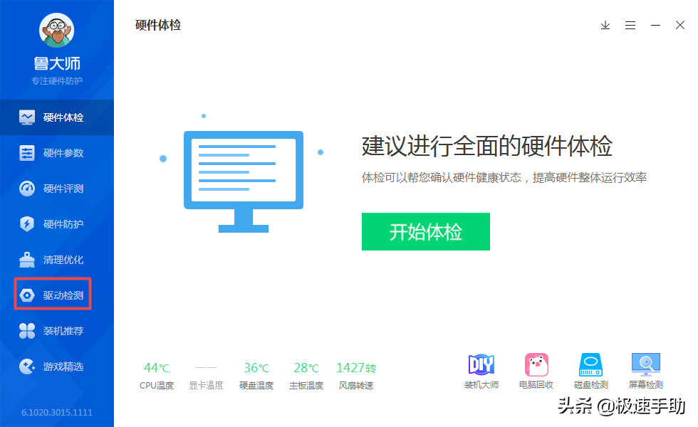 在电脑上安装鲁大师软件,然后打开软件,找到软件界面右侧的【驱动检测】功能,并点击打开,接着点击界面上的【重新检测】图标,让软件对电脑中的驱动进行一个检测。