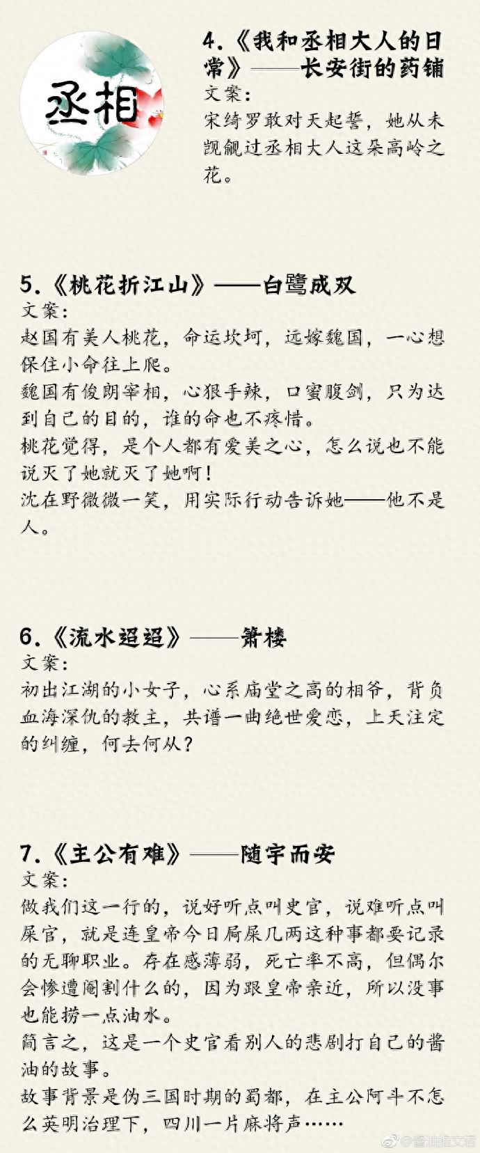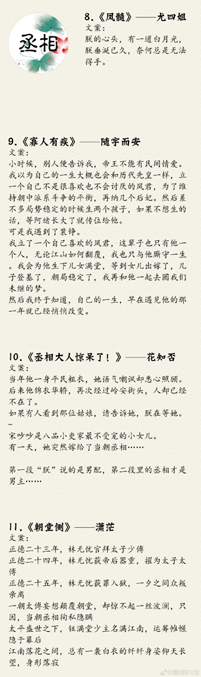 我一直喜欢男主是宰相的设定,因为这样的男主一般都是年纪轻轻,而且必定很是清雅。