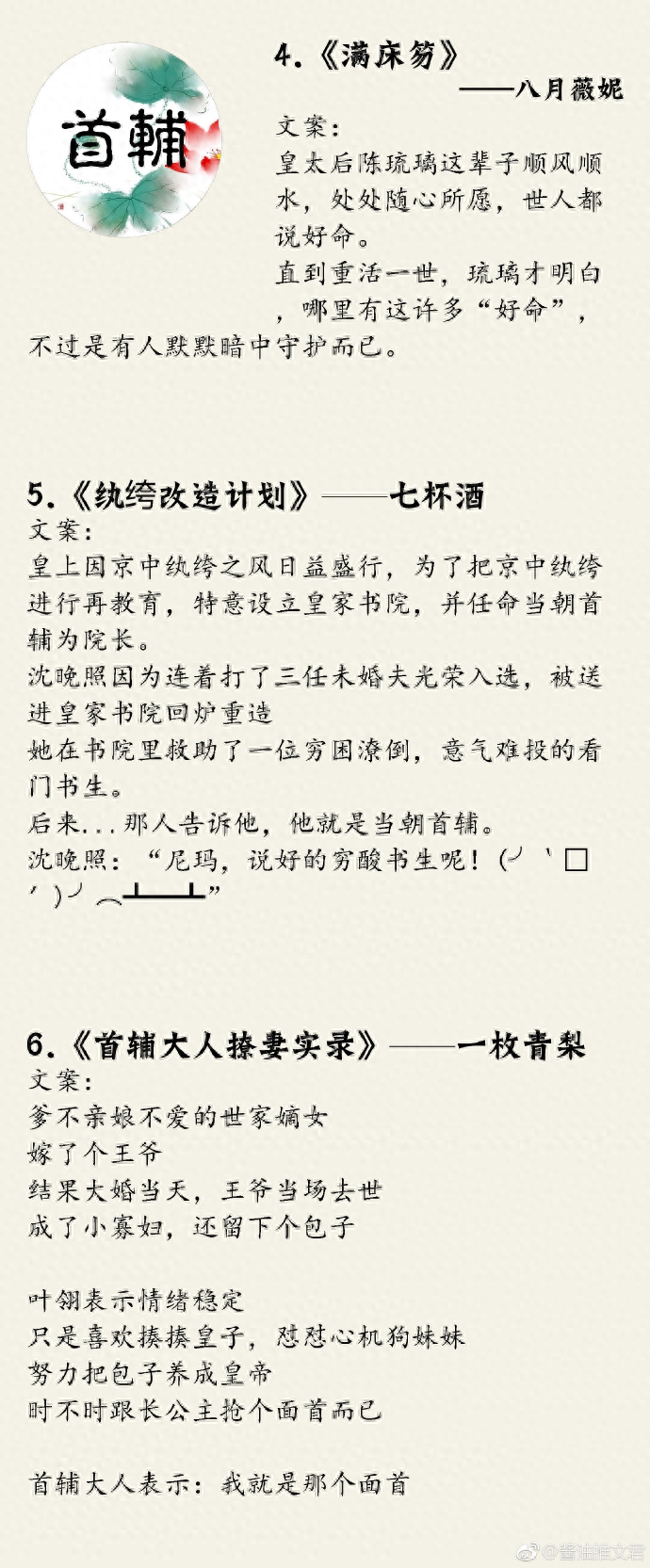 所以,今天给大家盘点了一大波男主设定是宰相、首辅或者位极人臣的言情小说。