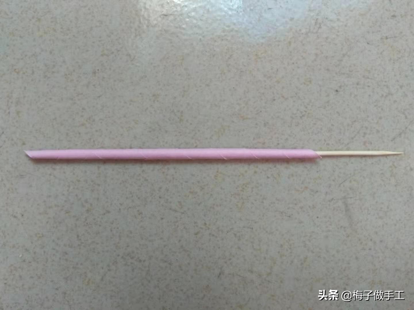 4、把两张小纸条涂上固体胶分别缠绕在牙签上,然后取下来。