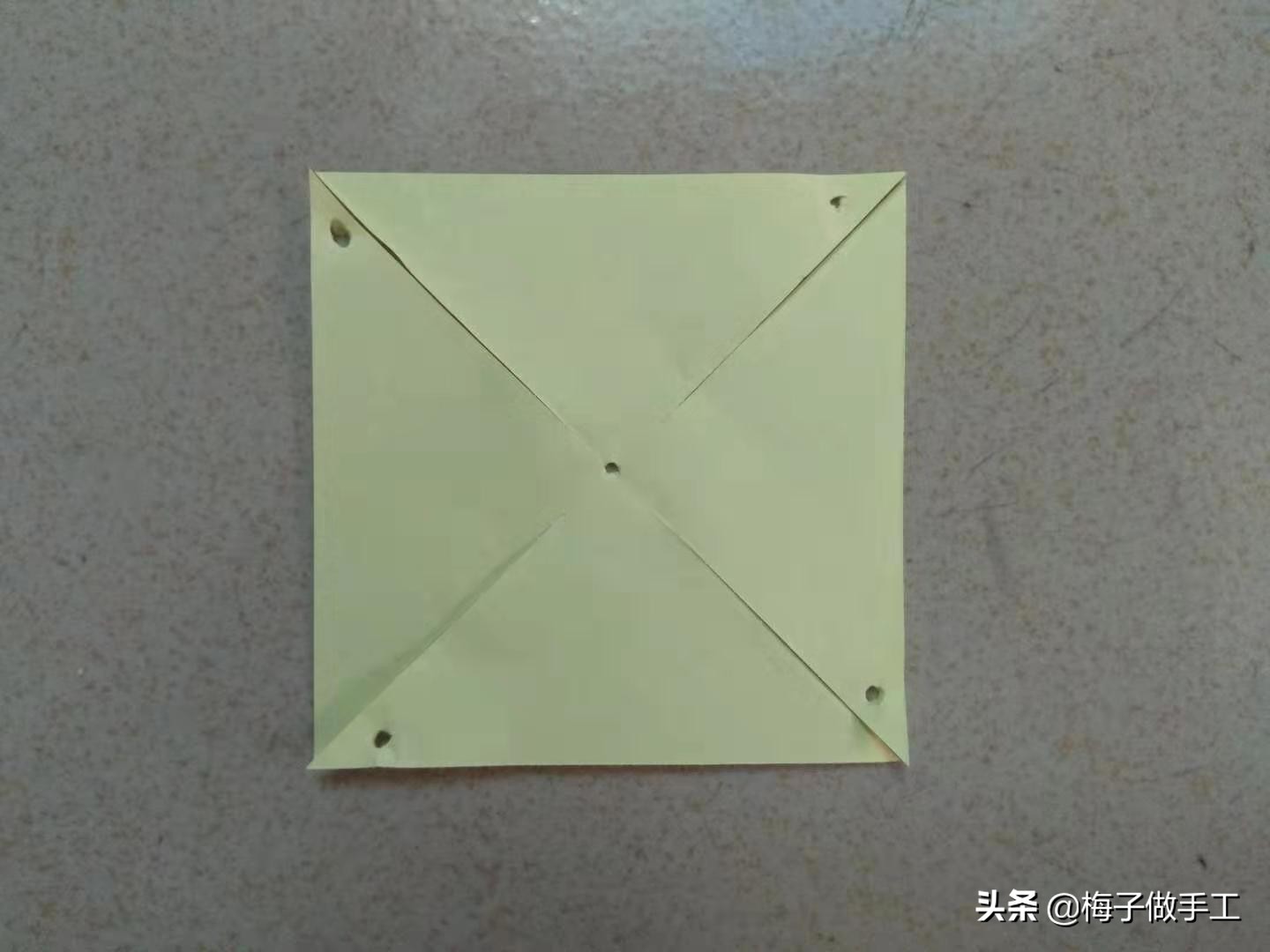 2、四个角分别沿对角线向中心点剪开,距离中心点1cm处停下。