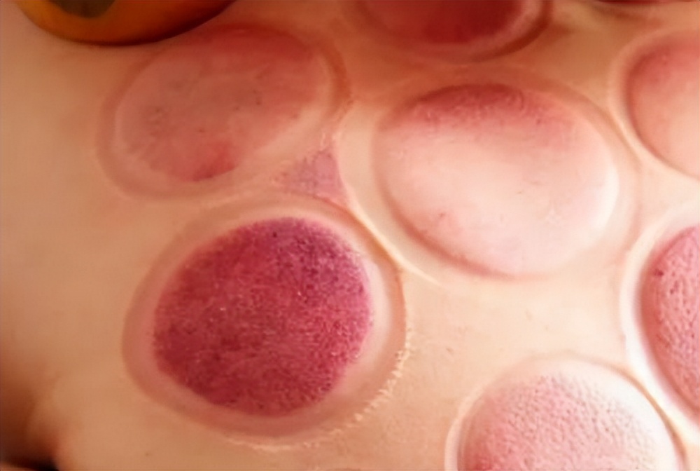 9、罐印出现水泡,说明体内湿气重,如果水泡内有血水,是湿热毒的反应。