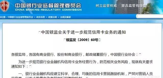 2009年,当时银监会曾经发不过一个文件,叫做《中国银监会关于进一步规范信用卡业务的通知》,这个通知十三条明确规定:银行业金融机构应审慎实施催收外包行为。实施催收外包行为的银行业务金融机构,应建立相应的业务管理制度,明确催收外包机构选用标准、业务培训、法律责任和经济责任等,选用的催收外包机构应经由本机构境内总部高级管理层审核批准,并签订管理完善、职责清晰的催收外包合同,不得单纯按欠款回收金额提成的方式支付佣金。