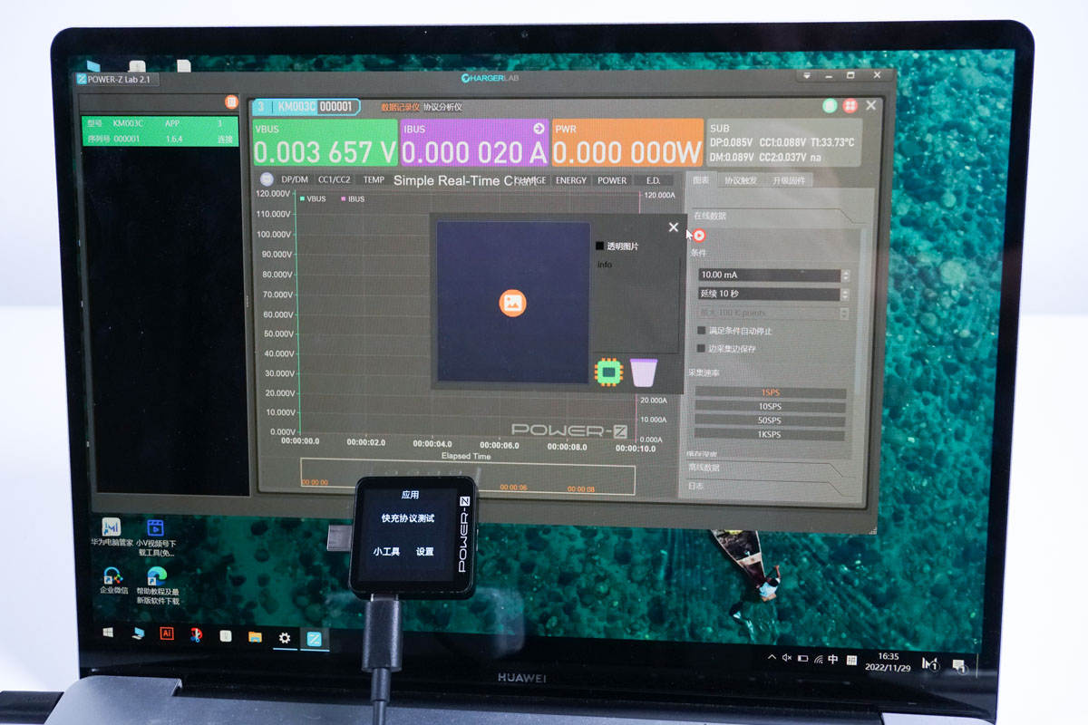 首先需要在电脑上下载 POWER-Z KM003C的测试软件,通过USB-C端口将电脑与 KM003C测试仪进行识别连接。