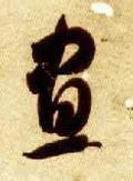 下部“旦”字形扁宽,紧凑靠上。“日”旁要紧凑上靠,上宽下窄,整体稍抗肩。左竖斜切起笔,向下稍右斜,勿重;横折虚接起笔,横画勿重,抗肩与上面协调,略呈俯势,以上面中竖为中心左边稍短右边稍长,顿笔后右竖稍重,左斜,渐轻;里面横画靠左,轻盈;底横稍重,实接两竖。最后底横注意与“日”旁勿远,起笔左探,左边稍抗肩,过中间后渐平、渐重,使横画略呈拱形,收笔稍下拉,以稳住整字。