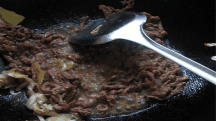 第六步,锅里面放入适量的植物油,待油稍微热后将腌制好的牛肉丝放入锅里面翻炒,当牛肉变色后立马盛出来,这样可以保证炒出来的牛肉鲜嫩润滑。